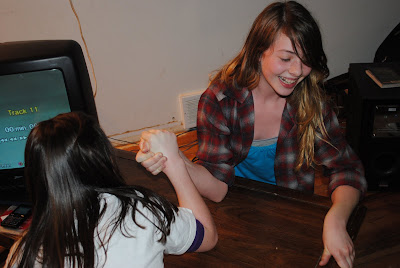 Harley and Veronica had an arm wrestling competition to decide who would choose first from the stack of clothes I brought for them. It was a close match, but in the end, Harley was victorious.