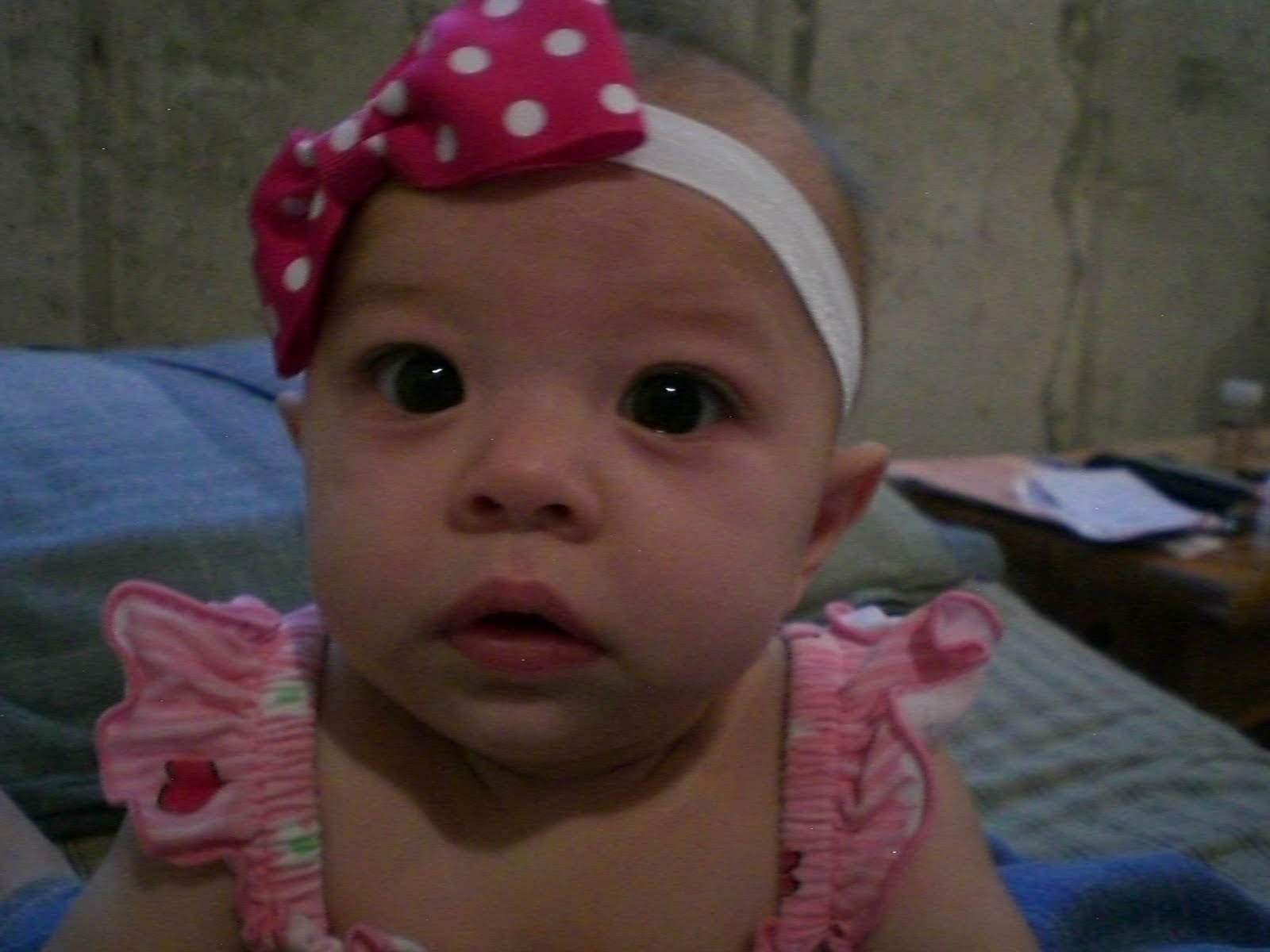 ピンクのりぼんがとても似合っていてかわいい!ベビーフードもすぐ上手に食べるようになるよ。ゆっくり少しずつ食べさせてね。